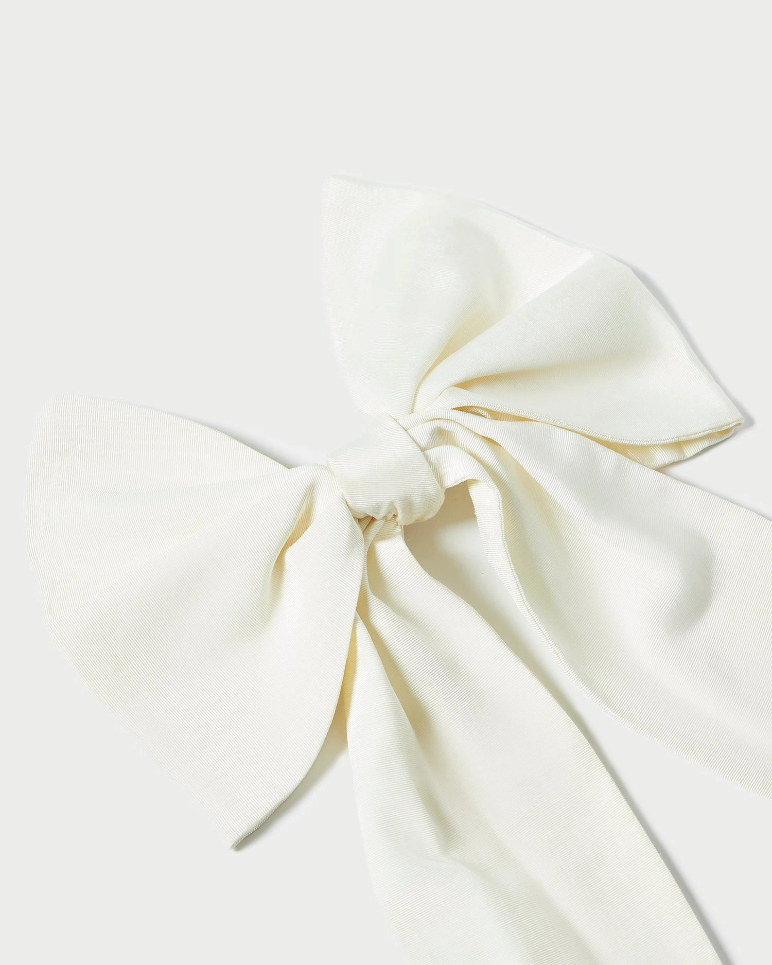 Hair barrette with oversized bow in cream Italian moiré.
